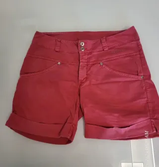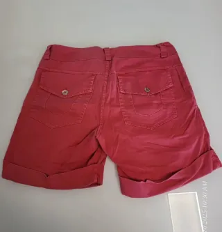 Pantaloncini da donna in un vivace color rosa. Tg 40 L - Vita alta con chiusura a doppio bottone. - Tasche anteriori. - Orlo risvoltato.
