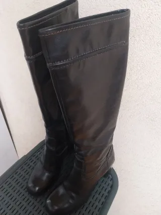 Eleganti stivali neri alti in pelle. - Ottime rifiniture. - Zip laterale per facilitare la calzata. - Altezza tacco cm 6- Altezza gambale cm 30. - Suola in gomma. - Foderati internamente. - Base tacco consumata (vedi foto nr 7) - Comodissimi.