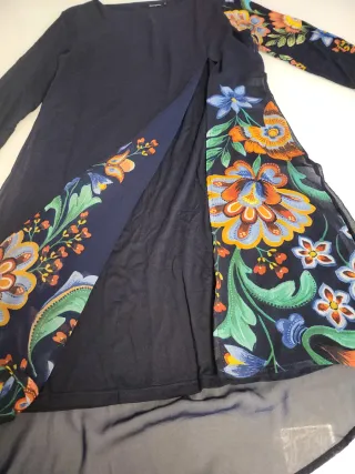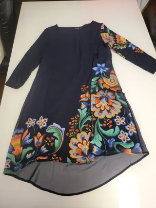 Vestito Desigual con una vivace stampa floreale. Tg 40 - Maniche lunghe. - Tessuto leggero e fluido. - Orlo asimmetrico.
