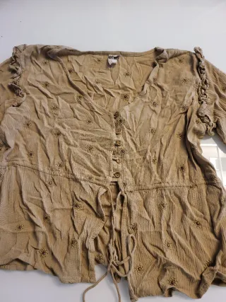 Maglia da donna con un design unico e dettagli ricercati. Tg M - Maniche lunghe. - Chiusura con bottoncini. - Coulisse in vita per regolare la vestibilità. - Decorazioni floreali. - Collo a V.