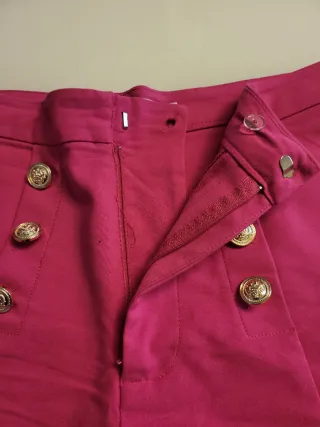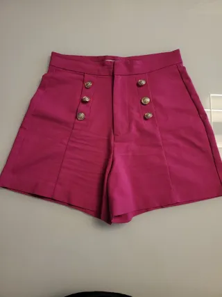 Pantaloncini eleganti da donna in un vivace color fucsia. Presentano un design a vita alta con dettagli di bottoni dorati. Tg 44 - Vita alta - Chiusura con bottoni dorati - Tasche laterali