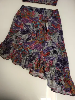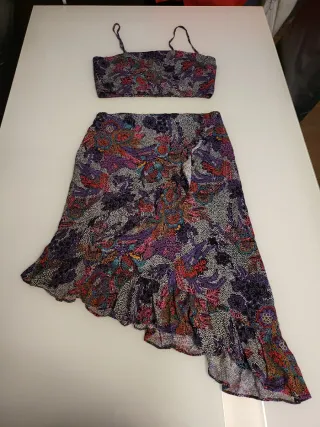 Completo donna composto da top corto e gonna. Top con spalline sottili ed elastico dietro. Gonna con cerniera dietro, balze sul davanti. Fantasia multicolore Perfetto senza difetti tg L di Piazza Italia