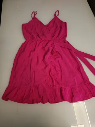 Vestitino corto con spalline sottili e stampa effetto stropicciato. Tg M - Scollo a V. - Cintura con laccetti. - Gonna con balza. - Tessuto leggero.