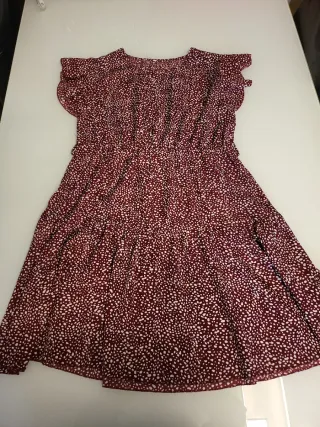 Vestitino da donna con fantasia a pois. Tg M - Maniche corte a volant. - Vita elasticizzata. - Gonna a balze.