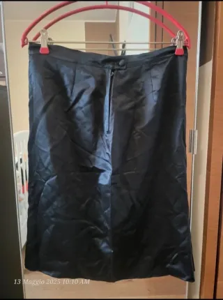 Gonna lunga nera, con una finitura lucida che cattura la luce. Non riporta tg guardare le misure in foto - Tessuto satinato. - Lunghezza midi. - Vita alta.