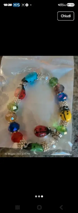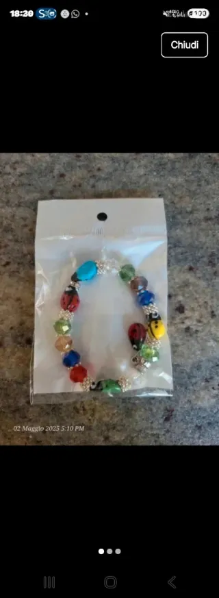 Delizioso bracciale da donna, perfetto per aggiungere un tocco di colore al tuo stile. - Perline colorate e sfaccettate. - Charm a forma di coccinella. - Design unico e vivace.