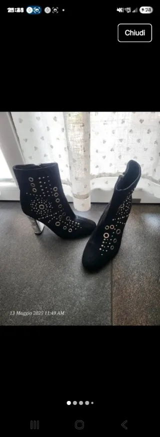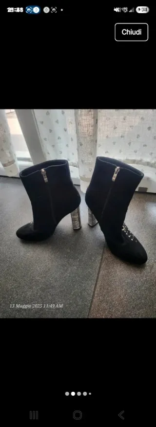 Stivaletti donna neri, con brillantini e borchie, Tacco argento con effetto rigato, cerniera laterale funzionante. N 37. Non hanno difetti, usati pochissimo. #mariapia993donna #tacchieleganti37