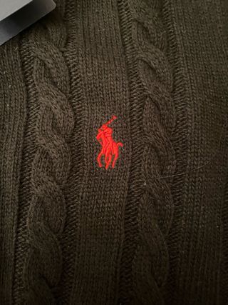 Maglione da uomo Polo Ralph Lauren in maglia a trecce. Prezzo trattabile Spedìzione immediata - Colore nero - Logo Pony rosso ricamato sul petto - Scollo a V - Polsini e fondo a costine