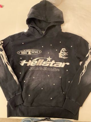 Felpa con cappuccio Hellstar da uomo, nuova con cartellino. Prezzo trattabile Spedizione immediata - Design con stampa frontale e sulle maniche. - Dettagli a forma di stelle sparse. - Tessuto confortevole.