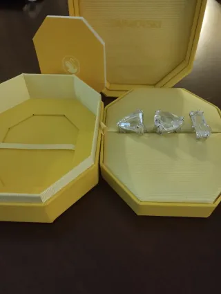 Set di tre anelli Swarovski con pietre trasparenti. - Anello con pietra a forma di goccia. - Anello con pietra a forma di cuore. - Anello con pietra a forma triangolare.
