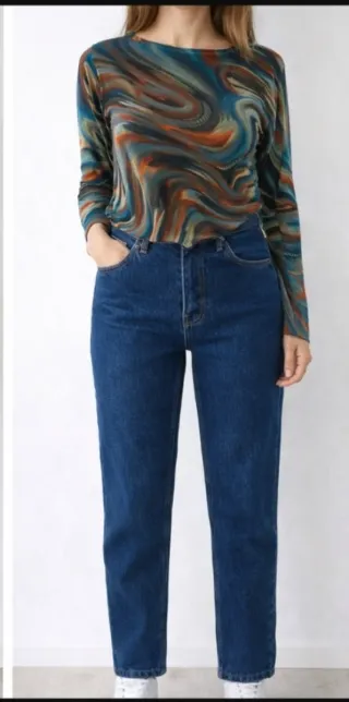 Abito da donna con una fantasia unica e colorata. - Maniche lunghe. - Girocollo.