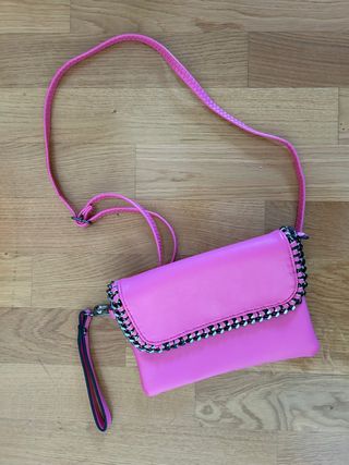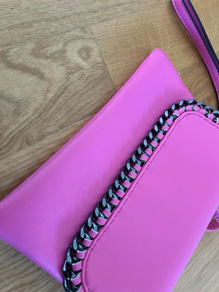 borsetta a tracolla color rosa shocking. - Tracolla regolabile e rimovibile. - Dettagli a catena sul risvolto. - Tasca interna. Dimensioni: 21,5 cm (L) x 15 cm (H)