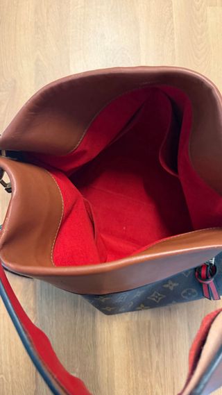 Borsa Louis Vuitton in tela Monogram con dettagli in pelle marrone e nappe decorative. - Tela Monogram iconica - Dettagli in pelle marrone - Nappe decorative con accenti rossi - Finiture dorate