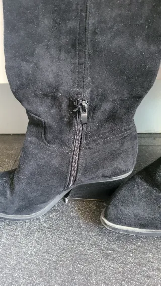 Eleganti stivali da donna in siml camoscio. - Materiale: simil camoscio - Design a punta - Zip laterale - Tacco basso