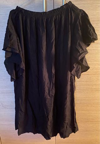 Blusa morbida con maniche a volant. - Scollo elasticizzato. - Tessuto leggero e fluido.