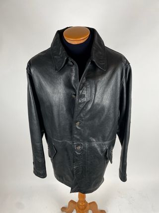 Giacca Timberland originale in vera pelle nera, produzione anni ’90 (etichetta Fall 1996, RN 76382, Made in Korea). Modello lungo di alta qualità, pelle morbida robusta, cuciture solide, imbottitura trapuntata per ottimo comfort. Sul retro del colletto è presente un elegante inserto in pelle color cuoio con logo Timberland impresso. Condizioni: ottime, nessun difetto strutturale. Vestibilità: ampia, tipo L comoda / XL regolare. Misure: Spalle 57 cm Petto (sottoascella) 68 cm Lunghezza 87 cm Manica dal centro: 59 cm