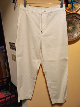 Pantaloni lino e cotone color panna, mai indossati, tg IT 40