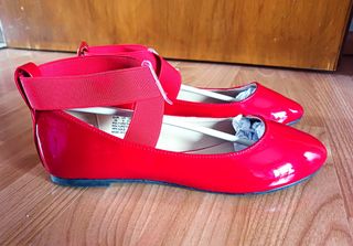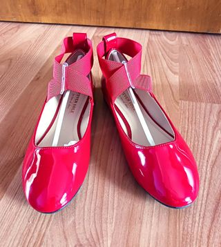 Ballerine in vernice rossa, taglia 36 (EU), con un comodo elastico alla caviglia. Nuove, indossate solo per pochi minuti.