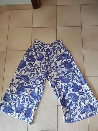 Bellissimi pantaloni palazzo H&M a fiori, perfetti per la primavera-estate Sono comodi e di un tessuto leggero. - Stampa floreale blu e bianca - Gamba larga - Perfetti per un look casual chic