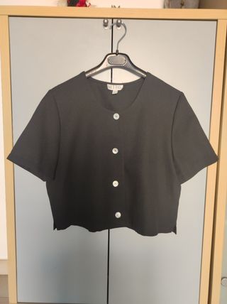 Bellissima blusa nera del marchio NICEDAY, perfetta per un look elegante e raffinato. - Modello corto - Chiusura con bottoni - Maniche corte