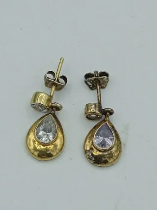 Orecchini Argento Dorato 925 Goccia Zirconi