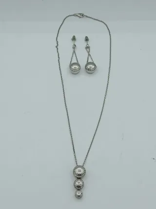 Elegante set coordinato di collana e orecchini. - Realizzato in argento 925. - Design con pendente a cascata di sfere. - Orecchini pendenti abbinati.
