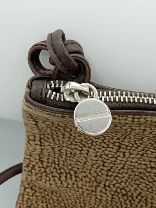 Borsetta piatta Borbonese, perfetta per essere portata a tracolla. - Materiale effetto martellato. - Chiusura con zip. - Dettagli in pelle. - Tracolla regolabile.misure 20x20cm