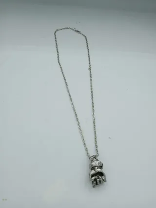 Collana unisex con un ciondolo a forma di pugno. - Materiale: metallo. - Design unico e audace.