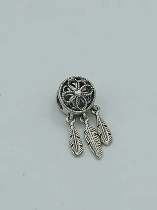 Charm Pandora a forma di acchiappasogni in argento. Un gioiello dal design ricercato. - Dettagli a forma di piuma. - Motivo floreale centrale.