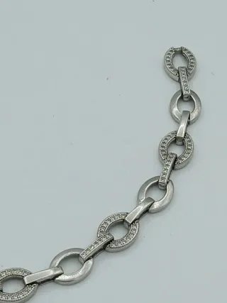 Elegante bracciale in argento 925. - Design a maglie ovali. - Dettagli con piccole pietre incastonate.lunghezza 19 cm
