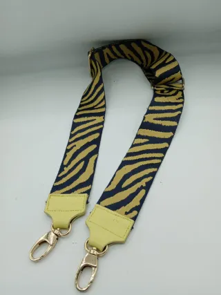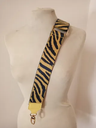 Tracolla alla moda con fantasia zebrata. - Fantasia zebrata gialla e nera - Tracolla regolabile. - Dettagli dorati.larghezza 5 cm.