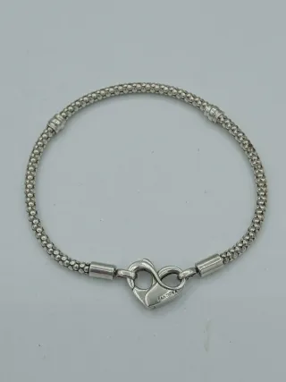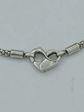 Elegante bracciale Pandora in argento con chiusura a forma di cuore. - Design a maglia snake. - Chiusura a cuore con logo Pandora inciso.lunghezza 17 cm.