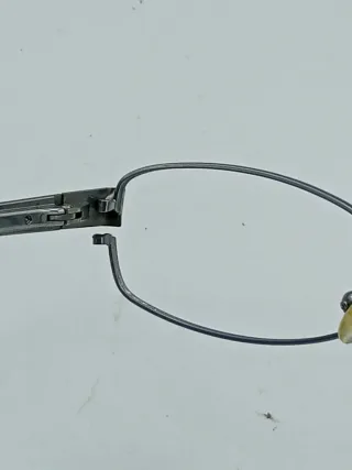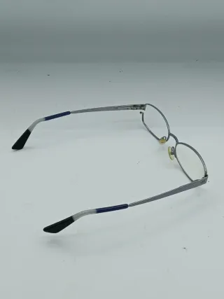 Elegante montatura per occhiali da vista Giorgio Armani. - Montatura in metallo color argento. - Custodia originale inclusa. - Panno per la pulizia con logo Giorgio Armani.e' presente una sola lente.la vite di una bacchetta è mancate come da foto.