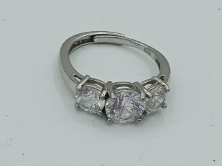 Elegante anello regolabile in argento 925, impreziosito da tre luminosi zirconi. - Materiale: Argento 925 - Design: Tre zirconi centrali - Finitura: Lucida