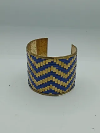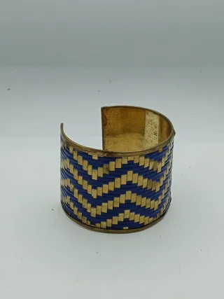 Elegante bracciale rigido vintage con un design intrecciato. - Realizzato in ottone. - Finitura bicolore blu e oro.spessore 5 cm.presenta segni di usura.