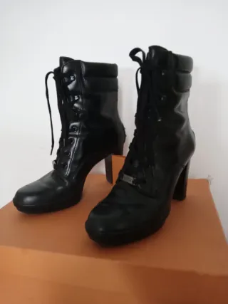 Eleganti stivaletti Tod's in pelle nera. - Modello stringato. - Tacco alto e plateau.10 cm. - Design sofisticato.