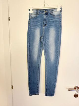 Jeans Skinny Blu a Vita Alta - Taglia XS Jeans skinny blu a vita alta, nuovi, perfetti per completare il tuo guardaroba con stile e versatilità. Un classico intramontabile che non può mancare nel tuo armadio! Lavaggio medio con effetto sfumato che dona profondità al colore. Il fit super skinny a vita alta snellisce e allunga la silhouette, mentre il modello 5 tasche classico si adatta a ogni occasione, dal casual al più elegante. Realizzati in denim stretch confortevole per garantirti libertà di movimento durante tutta la giornata. La vita alta assicura una vestibilità perfetta e una silhouette slanciata e femminile.