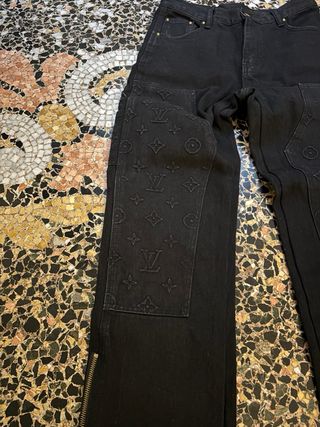 Jeans modello carpenter in denim nero. Presentano un motivo monogram LV all-over in rilievo. - Patch con monogram LV. - Zip laterali sul fondo gamba.