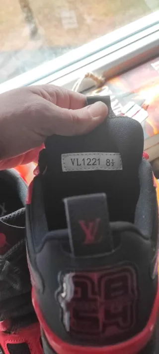 Scarpe Louis Vuitton con un design moderno e accattivante. - Combinazione di colori rosso e nero. - Logo Louis Vuitton visibile. - Arriva in sua scatola e sacchetto LV.