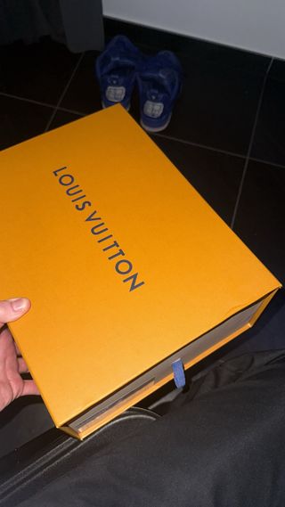 Set completo di confezione Louis Vuitton. - Busta arancione con manici blu. - Scatola arancione misura per scarpe uomo - Nastro blu con logo. - Cartellino arancione con logo. #shopperlouisvuitton #scatolascarpe #nastrolouisvuitton #cartellinolouisvuitton #accessorilouivuitton
