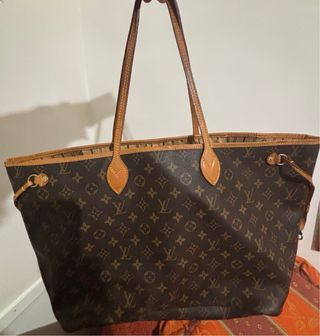 Borsa Maxi tote neverfull in pelle marrone. Presenta qualche imperfezione e qualche scucitura interna ma in buone condizioni generali.