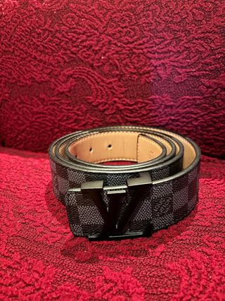 Cintura con iconico pattern a scacchiera. - Fibbia con logo LV in metallo nero. - Pattern a scacchiera grigio e nero. - Finitura in pelle.