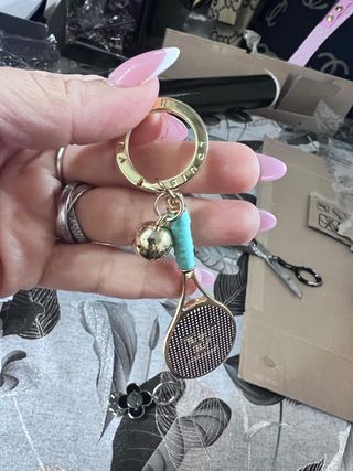 Portachiavi a forma di racchetta da tennis Louis Vuitton. - Dettagli in oro e turchese. - Ciondolo a forma di pallina da tennis.