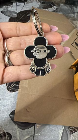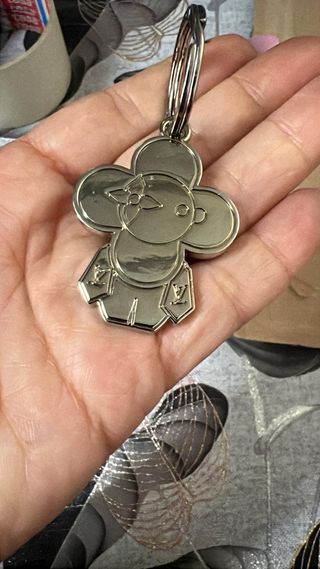 Portachiavi donna Louis Vuitton con design a forma di personaggio. - Dettagli in smalto nero e argento. - Charm a forma di fiore. - Logo LV inciso.