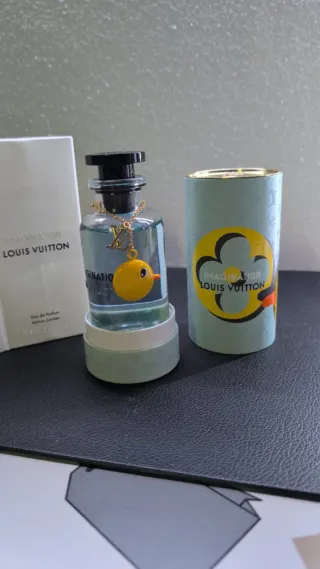 Profumo Louis Vuitton Imagination, edizione limitata pagato 450€ Nuovo Originale Spedizione veloce Tappo magnetico anticontraffazione Scontrino d'acquisto disponibile - Fragranza da 100ml. - Flacone con charm a forma di uccellino giallo e logo LV. - Scatola cilindrica decorata.