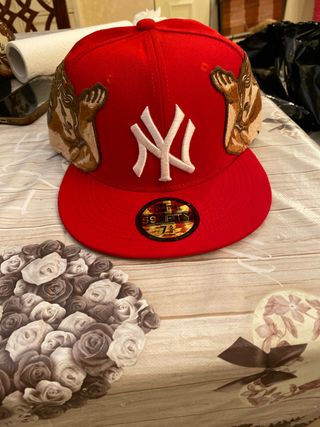 Cappello New Era con logo NY. - Taglia 7 5/8. - Design con figure decorative sui lati.