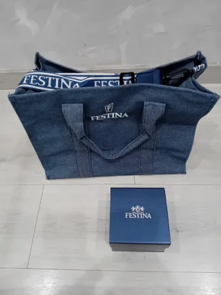 Elegante orologio cronografo Festina con quadrante blu e dettagli argentati. Compreso di borsa firmata Festina - Cassa in acciaio inossidabile. - Cinturino in acciaio. - Resistente all'acqua 100M. - Funzione tachimetro.