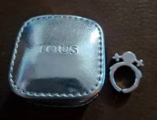 Anello del marchio Tous con un design di bambina. Realizzato in argento. Presentato nella sua confezione originale.