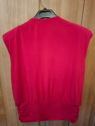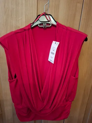 Maglietta a manica corta con design drappeggiato ed elegante. Scollo pronunciato. Dettaglio arricciato in vita. Tessuto morbido e fluido.