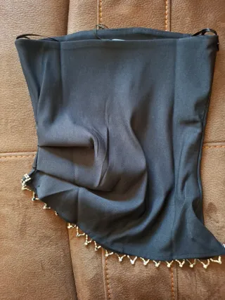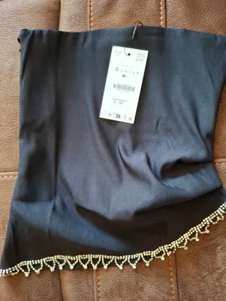 Top nero di Zara con un bel dettaglio di pietre sul fondo. Design senza spalline. Adornato di pietre. Taglia S.